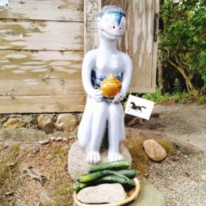 When I visited Tono a few years ago, I went to Kappa-buchi, a small, quiet river just outside the town that is known for legends of kappa, a water-dwelling yokai in Japanese folklore. Surrounded by trees, the river felt dim even during the day. There were only about five people there, including us. It was so quiet that I could hear nothing but the sound of the flowing water. On the riverbank stands a small shrine dedicated to the kappa. When I stood in front of it, I felt a slight sense of tension. The air was so still that it seemed possible for something to appear at any moment. Local people say that kappa are not just frightening monsters, but beings that live alongside the river. As I looked at the water and thought about this, they felt less like creatures from a fantasy and more like something that belonged to that landscape.
