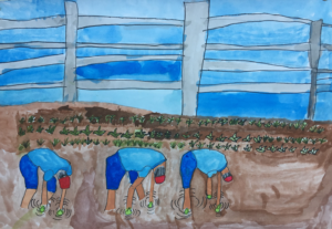 Fukuyama City in Hiroshima Prefecture is known as a kuwai-growing area. There is a kuwai field next to my house. In winter, I see farmers carefully digging kuwai out of the mud. They check the direction of each sprout and gently pull it out so they do not break it. Their quiet and careful work reminds me that the New Year is near.