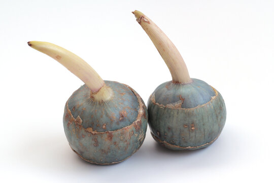In Japan, there are many foods that are considered lucky for the New Year. One of these lucky foods is a vegetable known as kuwai. It has a round shape with one straight sprout growing upward. The straight sprout symbolizes strength and growth.